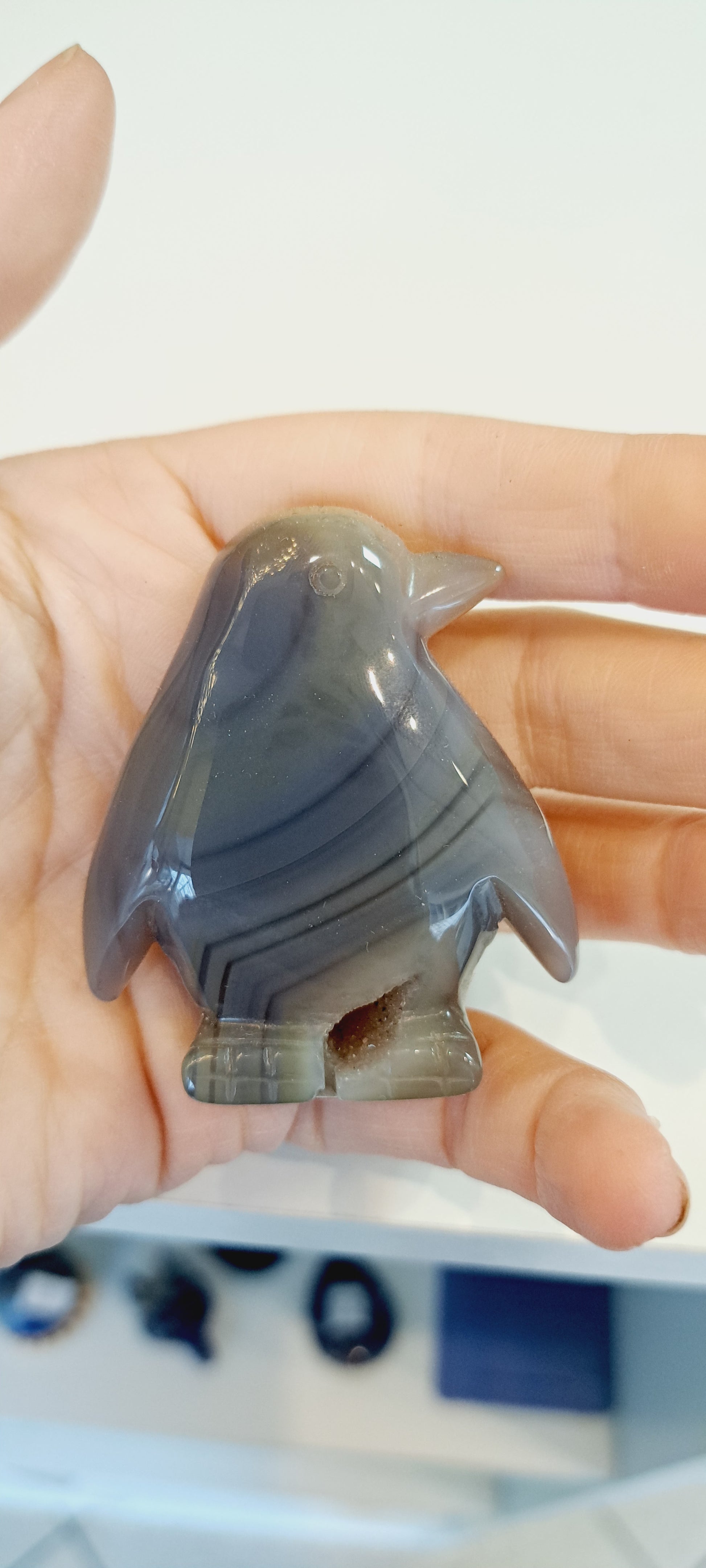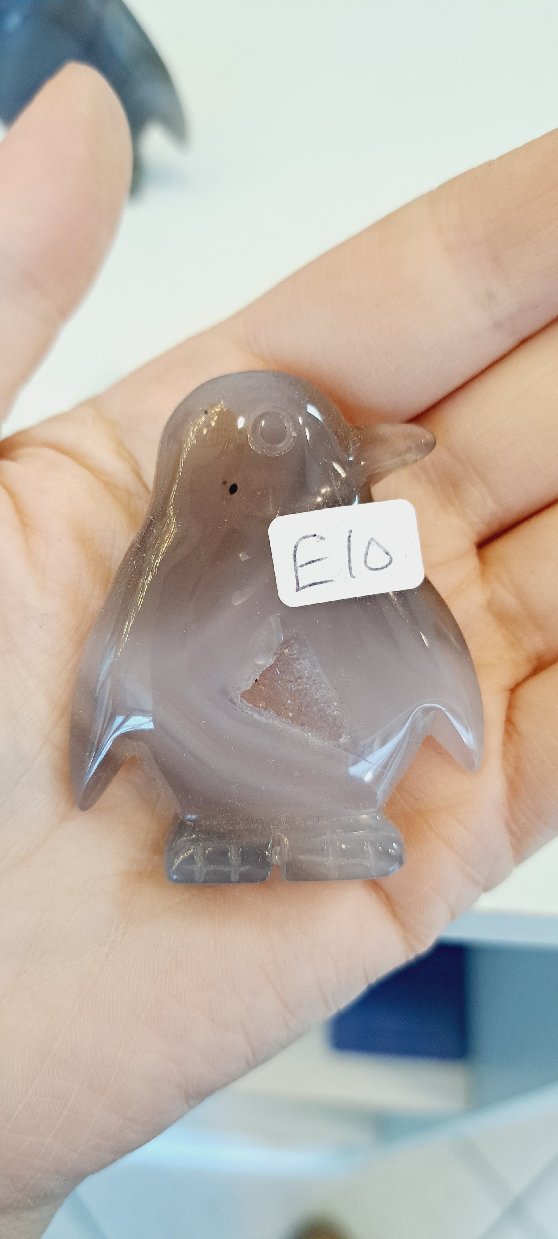 Grey druzy agate penguin