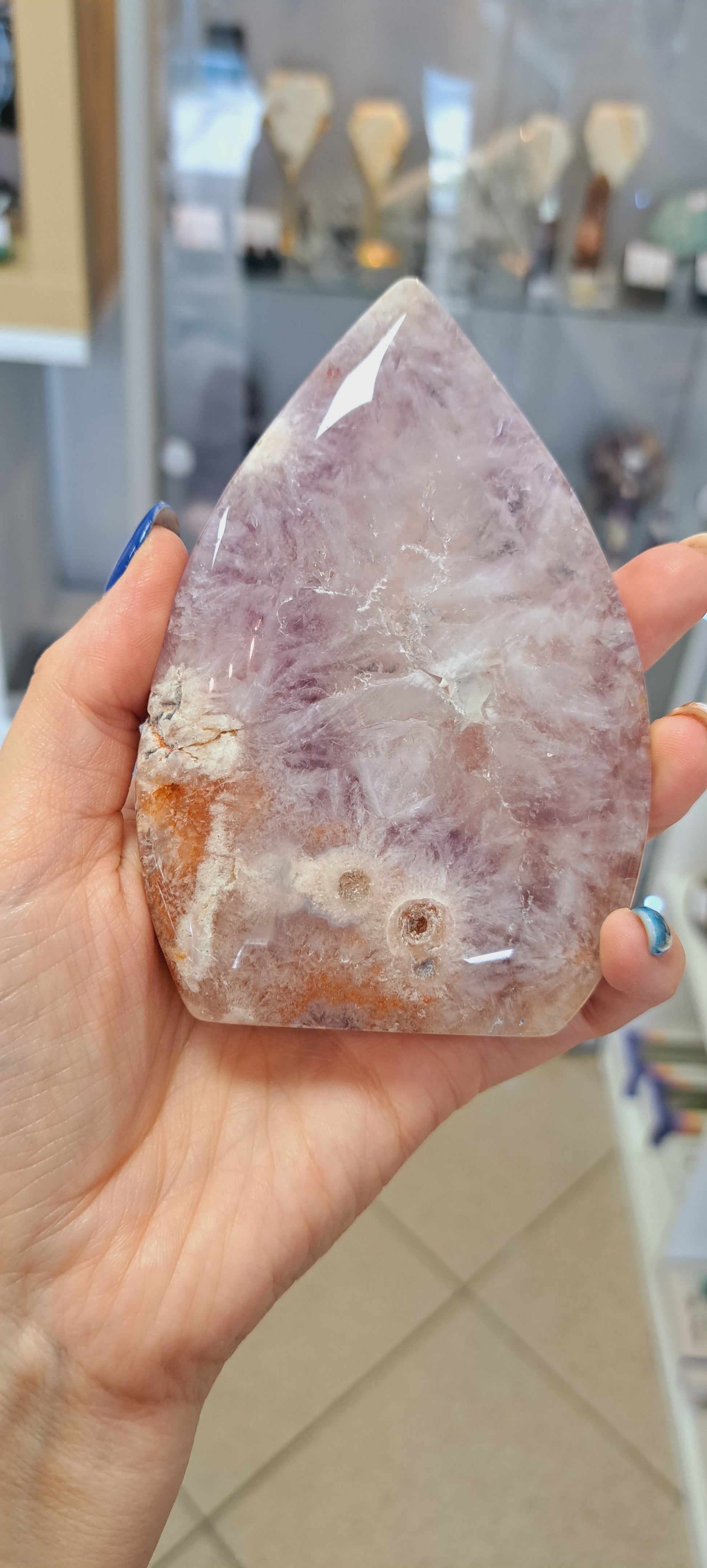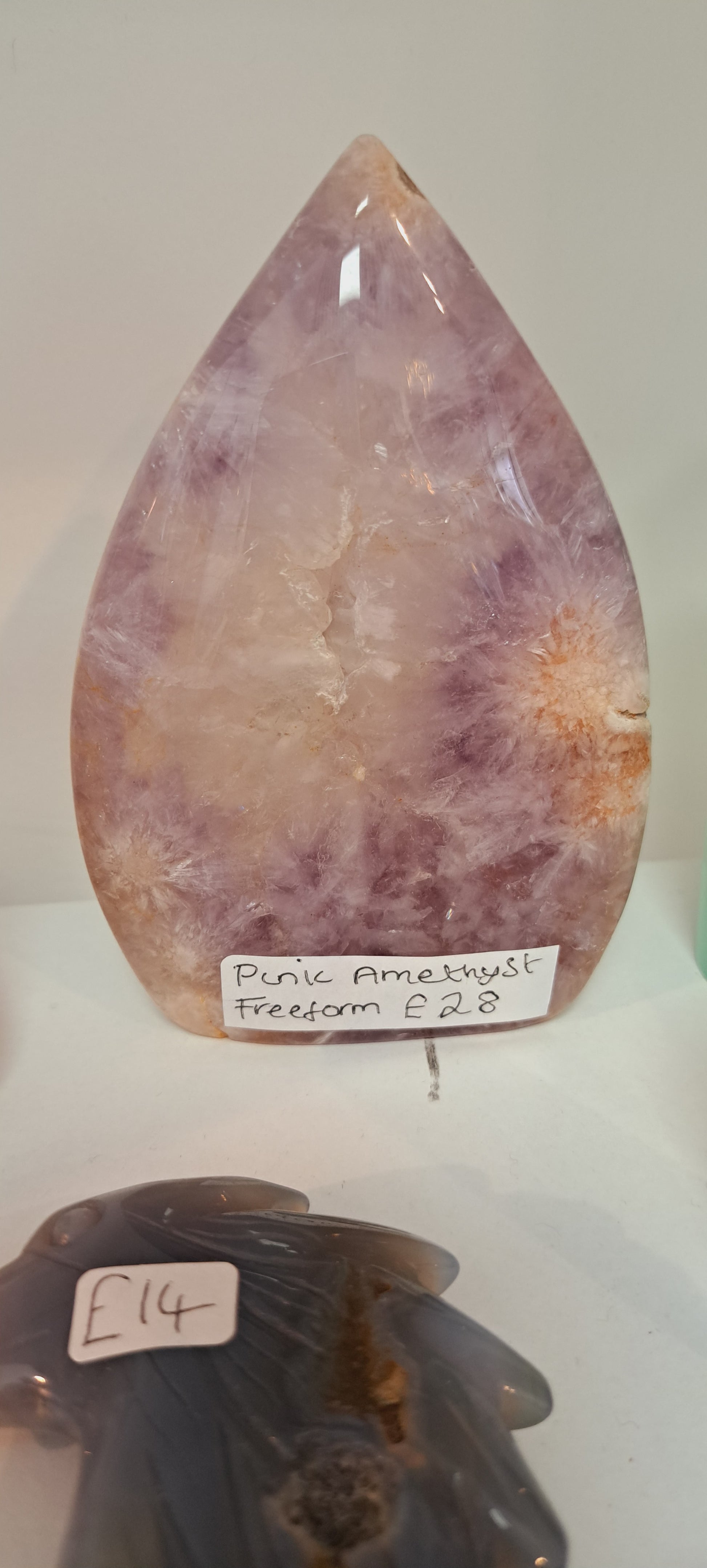 Pink Amethyst is believed to enhance love and compassion, promote spiritual growth, and balance the heart and crown chakras. It can also help instill feelings of security, calmness, and understanding, while dispelling negative emotions like anxiety and worry.
