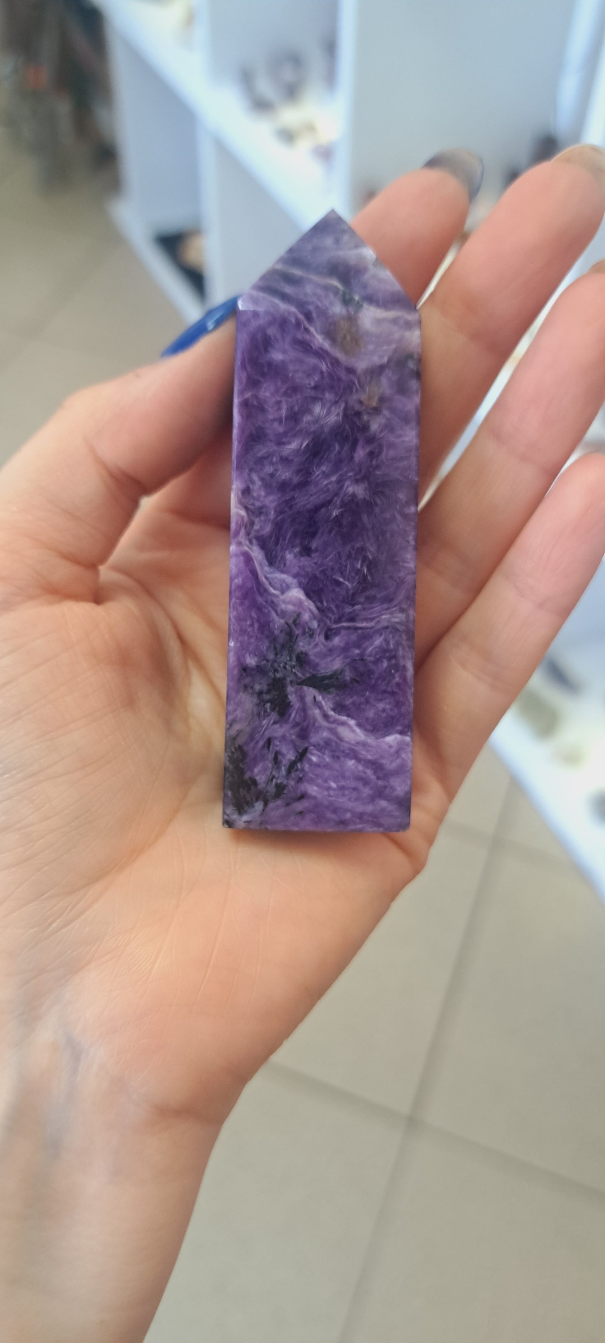Charoite predominantly found in Russia, and is associated with personal transformation, spiritual growth, and insight. It's also believed to promote resilience, courage, and determination, aiding in overcoming challenges and embracing change. Some consider it a "Chariot of Heaven," symbolizing unity with the divine.