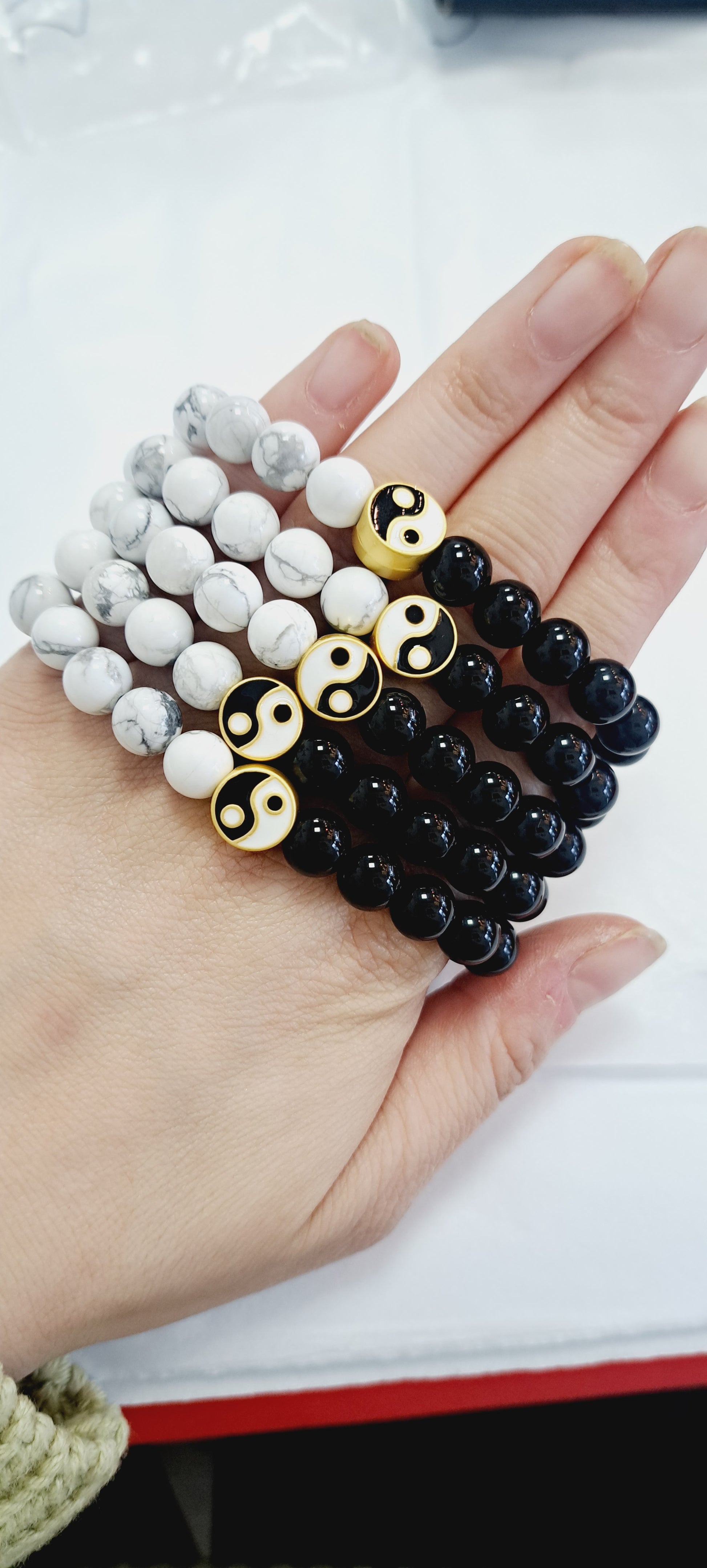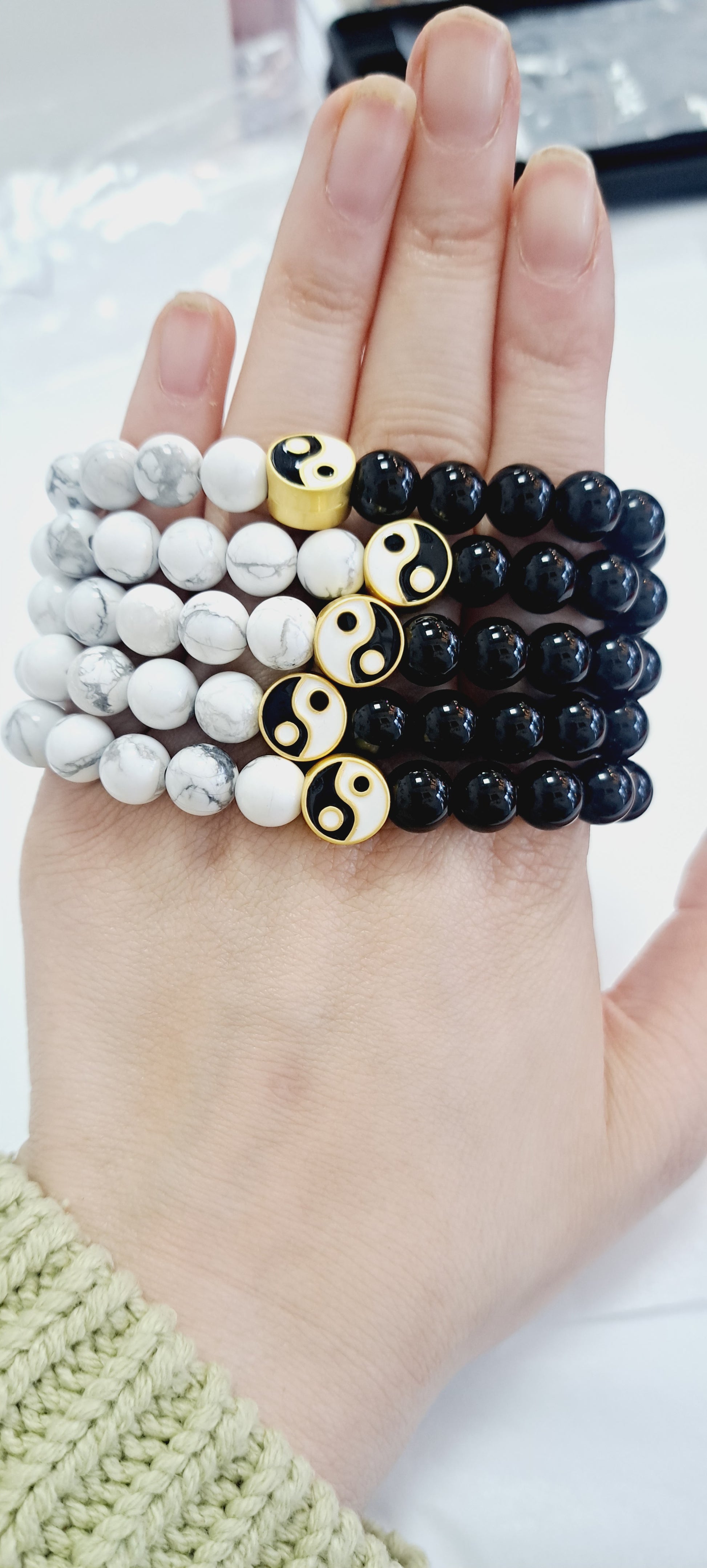 Ying yang bracelet howlite and obsidian